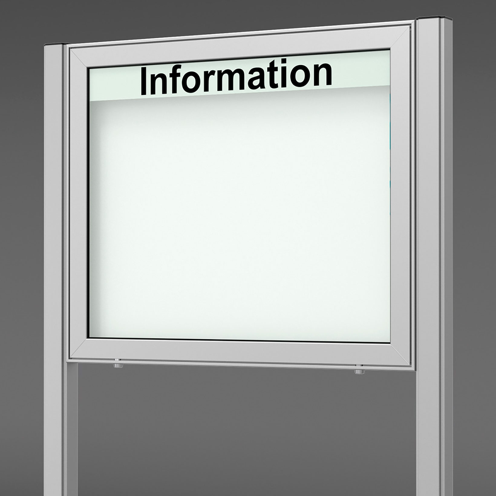 Wetterfestes Modell für großformatige Schaukästen im Außenbereich. Die Konstruktion aus stabilen Aluminium-Hohlkammerprofilen mit innen liegenden Eckverbindern geben diesem Schaukasten hohe Verwindungssteifigkeit und Stabilität. Geöffnet wird der Schaukasten per Klappflügel nach oben, unterstützt und sicher offen gehalten durch innen liegende Gasdruckfedern. Die Schließung erfolgt von unten über zwei Sicherheitsschlösser.