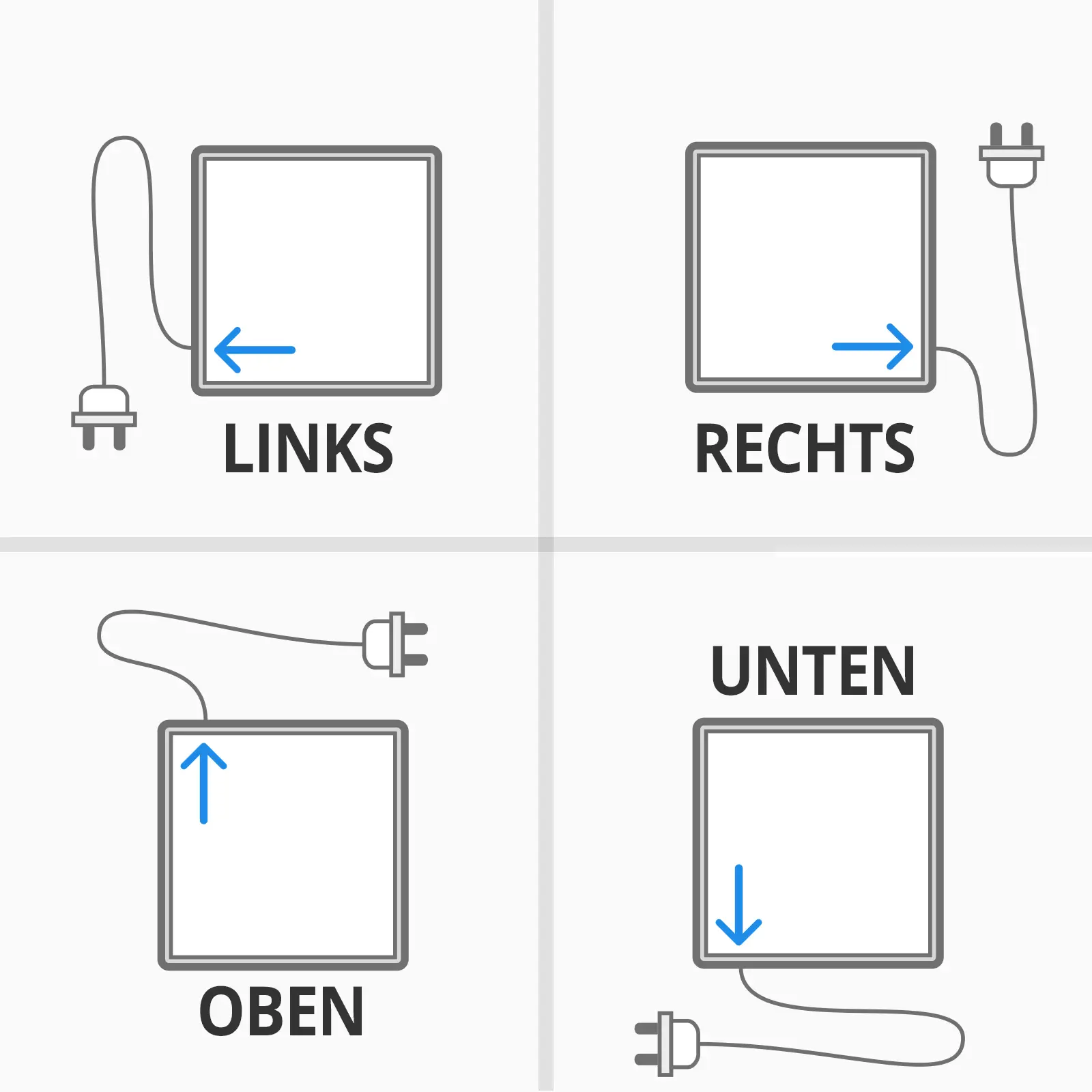 - schwarzen Kabel von 150 cm Länge mit 230V.